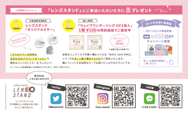 イベント期間中に、レンズスタンドにご来店いただいた方先着200名様にレンズスタンドオリジナルミラープレゼント!