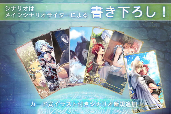 全てのカードはメインシナリオライター「イチハ」がシナリオを担当しており、☆2以上のカードには全て描き下ろしの美麗イラストが付いております。