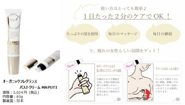 美容商材の製造・販売を行う株式会社lojus(よみ:ロフス、本社:東京都渋谷区、代表取締役:田中麻里奈)は、2017年6月から販売している自社ボディケアブランド『MAPUTI(マプティ)』シリーズ商品の1つ、『オーガニックフレグランスバストクリームMAPUTI』(以下バストクリームMAPUTI)の販売実績が2019年5月24日付で20万個を突破したことを、2019年5月28日(火)に発表しました。