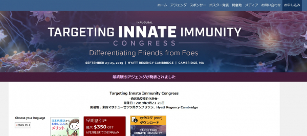 国際学会「Targeting Innate Immunity Congress-自然免疫標的化学会」(Cambridge Healthtech Institute主催)の参加お申込み受付開始