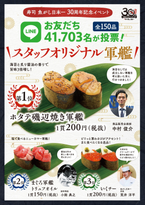 (4)10品を「立喰い寿司 魚がし日本一」のLINE会員41,703人に投票を募り、