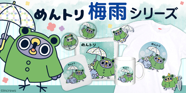 「めんトリ」の新アートが「カワセル」限定で登場です。今回はこれからの季節にぴったりな「梅雨」のシーズンアート。雨具をつけた「めんトリ」たちがかわいらしいデザインです。マグカップやステッカーに加え、Tシャツ、マフラータオル、クッションまで充実のラインナップで販売開始いたします。