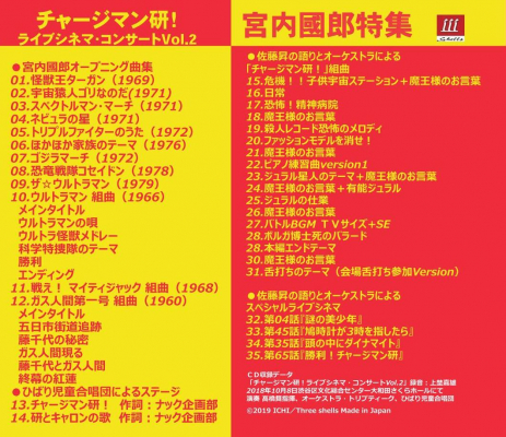 スリーシェルズは、株式会社ICHIの協力のもと開催した「 チャージマン研!ライブシネマ・コンサートVol.2/宮内國郎特集 」のライブCDを7月2日に発売します。