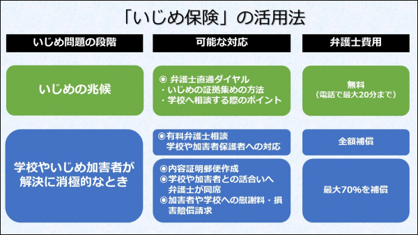 「いじめ保険」の活用法は以下の通りです。
