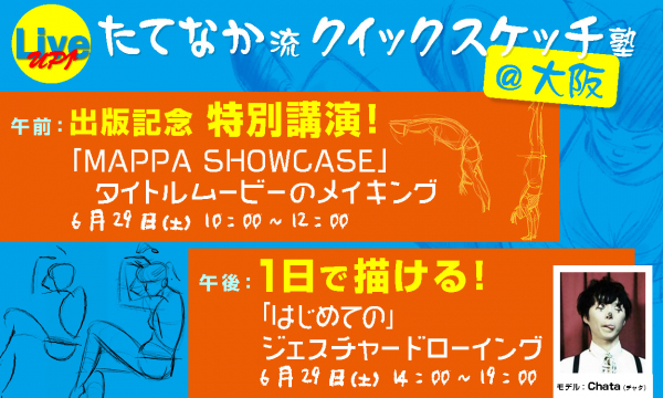 《出版記念セミナー》「ゾンビランドサガ」「MAPPA SHOWCASE」など、数々の作品に参加するベテランアニメーター 立中順平 氏。書籍刊行にあたり「たてなか流クイックスケッチ塾」を大阪にて開催!!