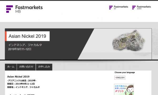 国際会議「Asian Nickel 2019-アジアニッケル会議 2019年」(Fastmarkets主催)の参加お申込み受付開始