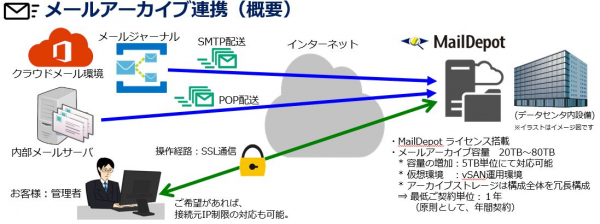 (MailDepot搭載内容:メールアーカイブ容量:20TB/検索ライセンス:2TB/最低契約年単位)