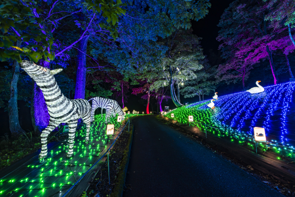 輝く動物たちと触れ合える、光のアニマルロード。