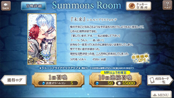 召喚ルームにて、イベント『ジューンブライド』のテーマにしたイベント召喚カードが期間限定で登場します。
