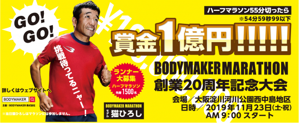 ハーフマラソン55 分切ったら GO GO 賞金1億円!! BODYMAKER MARATHON 〜創業20 周年記念大会〜