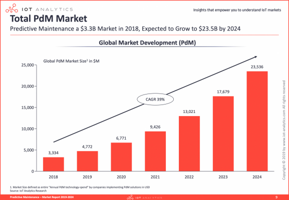 IoTアナリティクス(IoT Analytics)出版した「予測メンテナンスレポート 2019-2024年 - Predictive Maintenance Report 2019-2024」は世界の予測メンテナンス市場を調査し、技術、産業、地域毎の市場規模、2019年から2024年までの市場予測、関連企業情報などを提供しています。