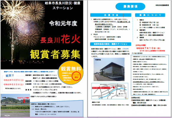 ■岐阜市長良川防災・健康ステーションからの長良川花火観賞者を募集します!