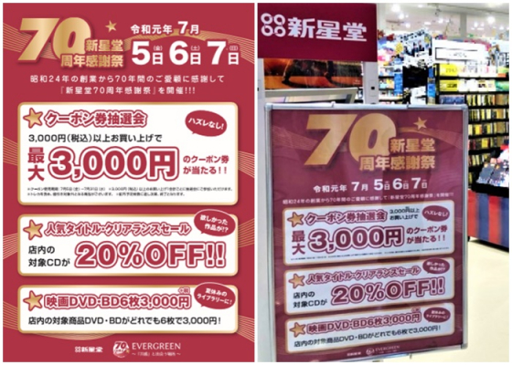 創業から70周年のご愛顧に感謝して 『新星堂70周年感謝祭』を開催!!