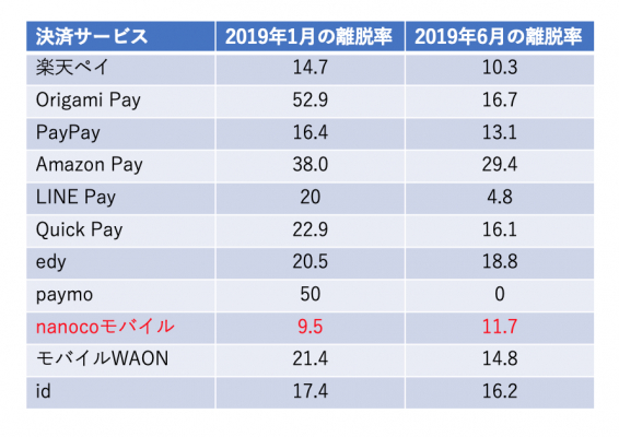新規顧客を獲得してもキャンペーン目当ての短期的な顧客ではキャンペーンが成功したとは言えません。キャンペーン終了後の動向についても注目してみましょう。「キャンペーン後にサービスを止めた」と回答した人の割合で見てみると、PayPayは2019年1月の調査では16.4%だったのが、2019年6月の調査では13.1%に減少し、LINE Payは同じく1月の20%から6月の4.8%に大幅に減少したことがわかりました。PayPayとLINE Pay以外のサービスはどうでしょうか。自社でキャンペーンをおこなっている11サービスの中で、キャンペーン終了後にサービスの利用をやめた人が増えたのはnanocoモバイルだけで、それ以外は離脱率が減少したことがわかりました。