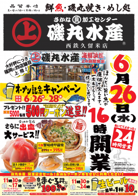 好評につき福岡4店舗目の出店! 【磯丸水産 西鉄久留米店】 オープン!