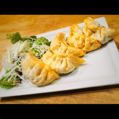 ●ビールと相性抜群の自慢の一品:一口餃子5個 or アジ大葉フライ5個