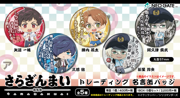 描き起こしイラストを使用した「トレーディング名言缶バッジ」が登場!