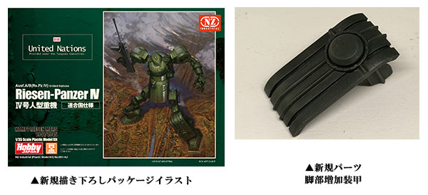 「IV号人型重機(連合国仕様)」の発売を記念し、新規パーツとなる脚部増加装甲を、ポストホビー各店およびウェブショップにてご予約・お買い上げの方に数量限定でもう1セット分プレゼント。