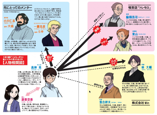 表紙は、人気漫画家の田中圭一氏の描きおろしイラストです。章末には二人の教えを主人公なりにまとめたノートも掲載。就活生や新社会人、部下や後輩を指導する人、そして働くことにモヤモヤを抱えたビジネスマンにもオススメです。