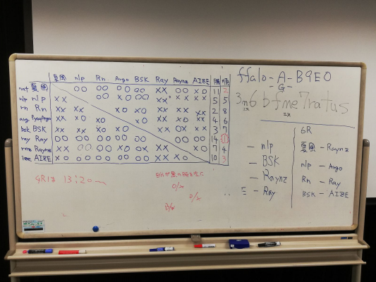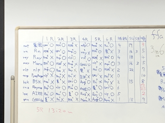 9路盤では1位を逃してしまい、19路盤では1位を獲得するという意気込みで臨んだ、2日目の大会ですが、9路盤では敗北した『Ray』『夏風』に勝利し、『Raynz』、『AIZE』が1位、2位を独占しました。『Raynz』は全勝し、『AIZE』が敗北したのは、『Raynz』のみとなり、非常に素晴らしい結果を得られました。