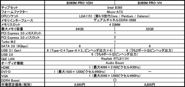 MSI、第9世代Core対応Intel B365チップセット搭載マザーボードに「B365M PRO-VDH」と「B365M PRO-VH」の2製品を追加
