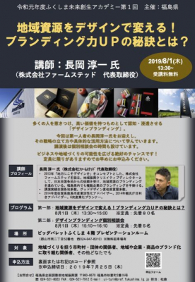 このたび8月1日(木)、弊社ブランドプロデューサー長岡が、福島県郡山市にて開催される「令和元年度ふくしま未来創生アカデミー第1回」にて「地域資源をデザインで変える!ブランディング力UPの秘訣とは?」をテーマに講演いたします。
