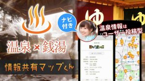 GoogleやAppleのマップコンテンツを利用して銭湯・温泉・日帰り温泉の情報をユーザーが投稿する形の口コミ情報共有アプリです。
