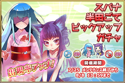 浴衣(青)属性期間限定SSR「スパナ【浴衣】」、水着(赤)属性SSR「半田ごて【水着】」が金ガチャに復刻!