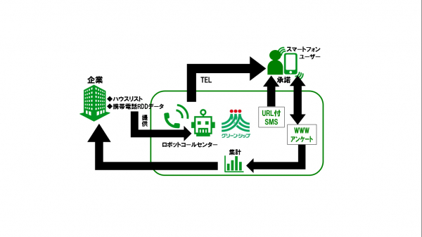 今回実施した『ロボットコールSMS調査』は、アウトバウンドIVRでランダムに抽出したスマートフォンに架電して、SMS送信許可を取得してSMSにアンケートアドレスを送信。その後、WEBサイト経由でアンケートに回答して返信してもらいます。架電対象が若年層に身近なデバイスであるスマートフォン所有者となるため、従来型の電話音声調査とは違う年代への調査が可能となります。