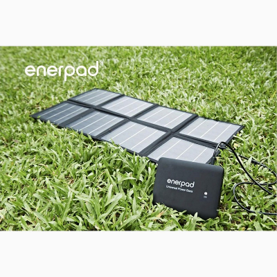 enerpad S-40Wは、ACコンセントを備えたモバイルバッテリー、enerpadシリーズ専用のソーラーパネルチャージャーです。アウトドアはもちろん、防災用・バックアップ電源に最適なenerpadシリーズを、太陽光から充電することができます。
