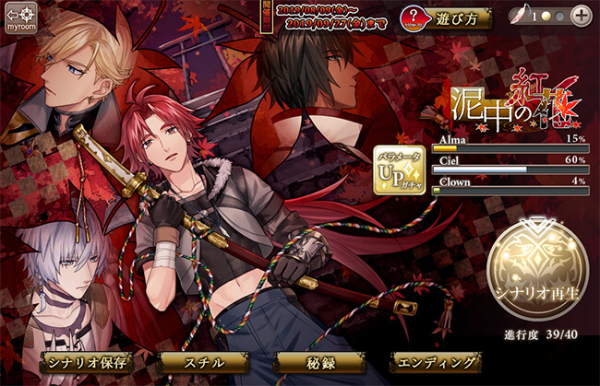 株式会社エレメンツリー(代表取締役:小川 邦弘、所在地:大阪府大阪市淀川区)は、本日よりスマホ向けBLゲームアプリ「あなカレ」にて、最新作『啼骸の鳥』(CV.ししゃも、つやまろ、和音、沖野靖広etc)新イベント、「泥中の花・紅」の提供を開始しました!