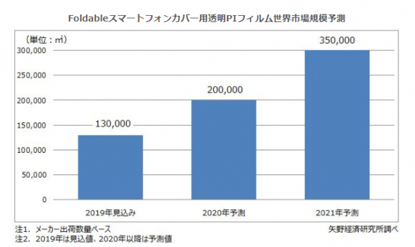 【矢野経済研究所プレスリリース】Foldableスマートフォンカバー用透明PIフィルム世界市場に関する調査を実施(2019年)〜フィルムメーカーのR&Dは原反と加工のブラッシュアップから材料開発へ〜