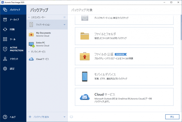 Acronis True Image 2020製品情報ホームページ