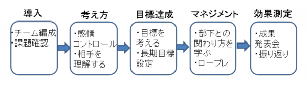 次世代リーダーが、1年間かけて、リーダーに欠かせない「考え方」、「実行力」、「コミュニケーション力」を身に着けられるカリキュラムです。リーダーに求められるスキルが学べるようになっており、自分自身が成果を出す方法、部下のマネジメント方法など内容は様々です。