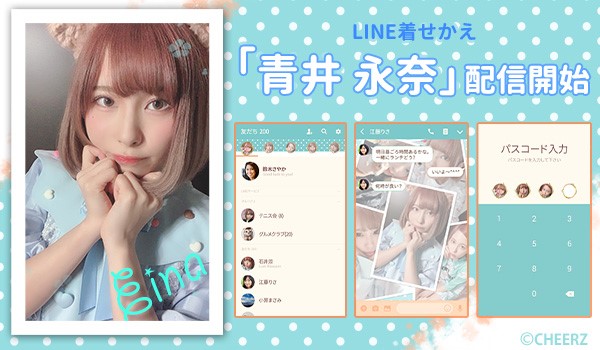 女性タレントとファンの無料ファンコミュニティサービス「CHEERZ」とLINEコンテンツ(スタンプ・着せかえ・絵文字)のパブリッシャーとして国内TOPクラスのシェアを誇るインクルーズとのコラボ企画第2弾です。「CHEERZ」にて、2019年3月26日(火) 〜3月31日(日)に開催した特別イベントにて見事1位に輝いた「青井永奈」がLINE着せかえで登場!