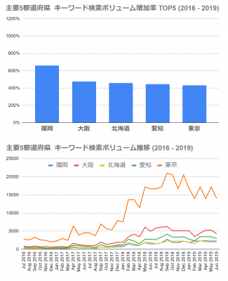 (※2016年7月〜2017年6月の平均ボリューム数と、2018年7月〜2019年6月の平均ボリューム数を比較したときの増加率)