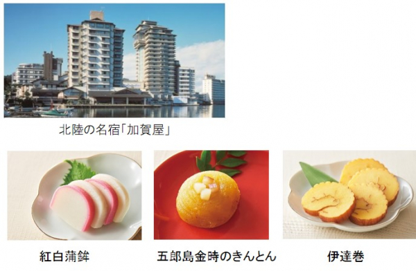 さらに、今年は一期一会の感動と感謝の気持ちを大事にする老舗旅館「加賀屋」と共同で「紅白蒲鉾」、「五郎島金時のきんとん」、「伊達巻」を開発しました。