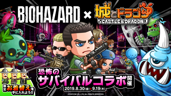 株式会社アソビズム(本社:東京都千代田区、代表取締役:大手智之)は、App Store・Google Playにて好評配信中の『城とドラゴン』で、株式会社カプコン(本社:大阪市中央区、代表取締役社長:辻本春弘)のサバイバルホラーゲーム『バイオハザード』シリーズとのコラボイベントを、2019年8月30日(金)より開催いたします。