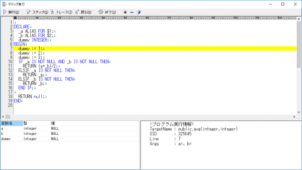 新しいバージョンでは、EDB Postgres 11に対応しました。最新のEDB Postgres環境でも「SI Object Browser for Postgres」を安心して利用できます。また、新たにストアドプログラムのデバッグ機能を追加しました。IDE(統合開発環境)にあるようなステップ実行や、ブレークポイントの設定、変数情報の確認などが可能となり、ストアドプログラムの開発だけでなく、より細かなデバッグ操作ができるようになります。