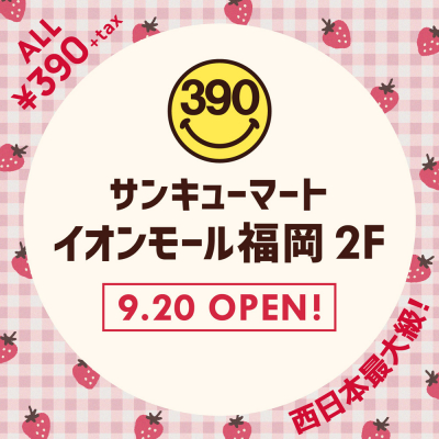 西日本最大級!9月20日(金)全品390円(税別)『サンキューマートイオンモール福岡店』OPEN!
