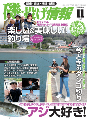 家族や仲間とワイワイ楽しめる身近な堤防釣り、荒磯のダイナミックな釣り、広々とした砂浜の爽快な釣りなどなど、バラエティーに富んだ記事が満載の『磯・投げ情報』。Vol.5(11月号/9月20日発売)は、釣りとセットで楽しみたい地元の美味しいもの、誰でも知っているアジに、トップシーズンを迎えるクロダイほか、食欲も満たす秋の釣りを各種取り揃えて紹介している。