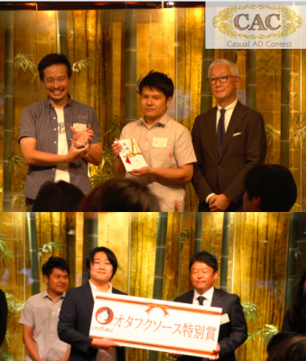 CAC実行委員会(運営:株式会社カラーズパレット)は、9月18日に原宿・東郷記念館で第三回勝手に広告コンテスト授賞式を開催しました。日中合わせて約100作品のエントリーの中から、SNSの人気投票及びCAC実行委員で選出されたファイナリストが、最終審査テーマであるオタフクソース株式会社のCM動画を作成。作品は、日中ビジネスクリエーションフォーラムに来場していた企業の方々もいる会場で上映され、特別審査員もその場で採点し、発表するという臨場感ある雰囲気の中での発表となりました。