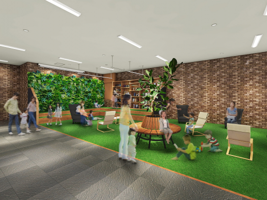 本・絵本が核となるインドアプレイグラウンドです。以下の3つのエリアで構成されます。
