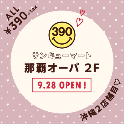 沖縄第2号店!全品390円(税別)『サンキューマート那覇オーパ店』9/28ついにOPEN!
