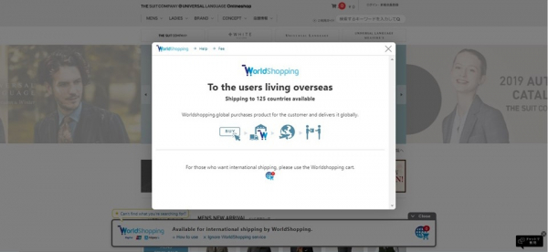 このシステムは、日本と世界125カ国を繋ぐ越境EC支援システムで、海外ユーザーが「ザ・スーツカンパニー公式オンラインショップ」のサイトにアクセスすると、自動的に海外ユーザー専用の画面に切り替わり、そこから商品の色・サイズ・数量を選択して買い物することができます。対応する言語は、日本語、英語、中国語(簡体字、繁体字)で、決済はクレジットカードのほか、ペイパル・アリペイ・銀聯の利用が可能です。