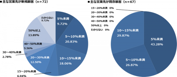 ⇒新規顧客への受注率は、1位は5〜10%未満、2位は10〜15%未満