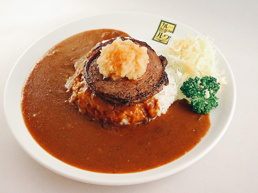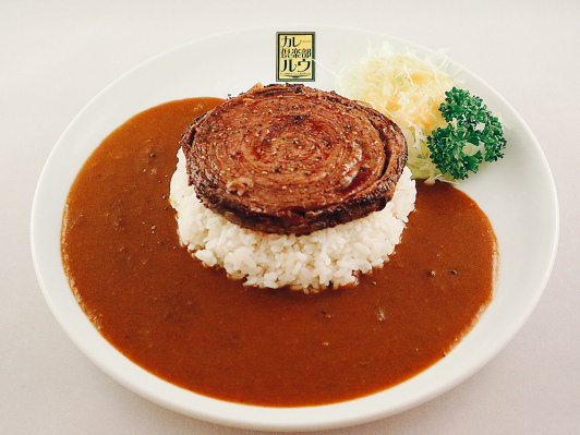 4種類のハーブで育てられたみやざきハーブ牛を丁寧に何層も巻き上げた柔らかく肉の旨味が溢れ出すステーキカレー。