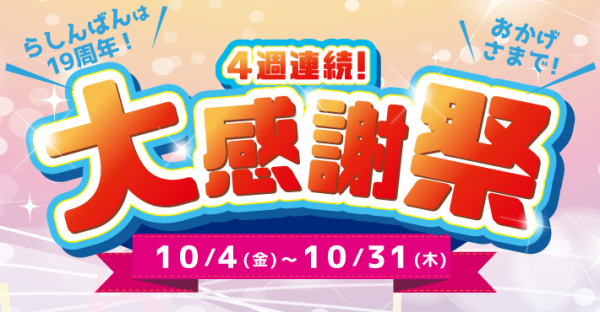 10月4日(金)より4週連続の豪華キャンペーンをらしんばん全店にて開催いたします。