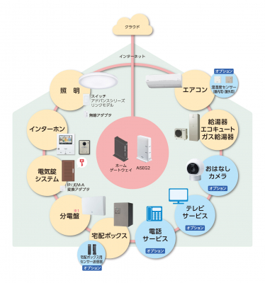 さらに、着荷お知らせサービスやエアコン自動制御、子供や高齢者・ペットの見守りカメラ、光回線を使ったテレビや電話の利用なども有料オプションサービスとして用意しました。