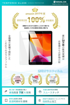 2019年待望の発売『新型iPad 10.2inch(第7世代)』WANLOKでは実機にて使用確認済みのボタンO型穴の透明保護フィルムをアマゾンで大ヒット販売中